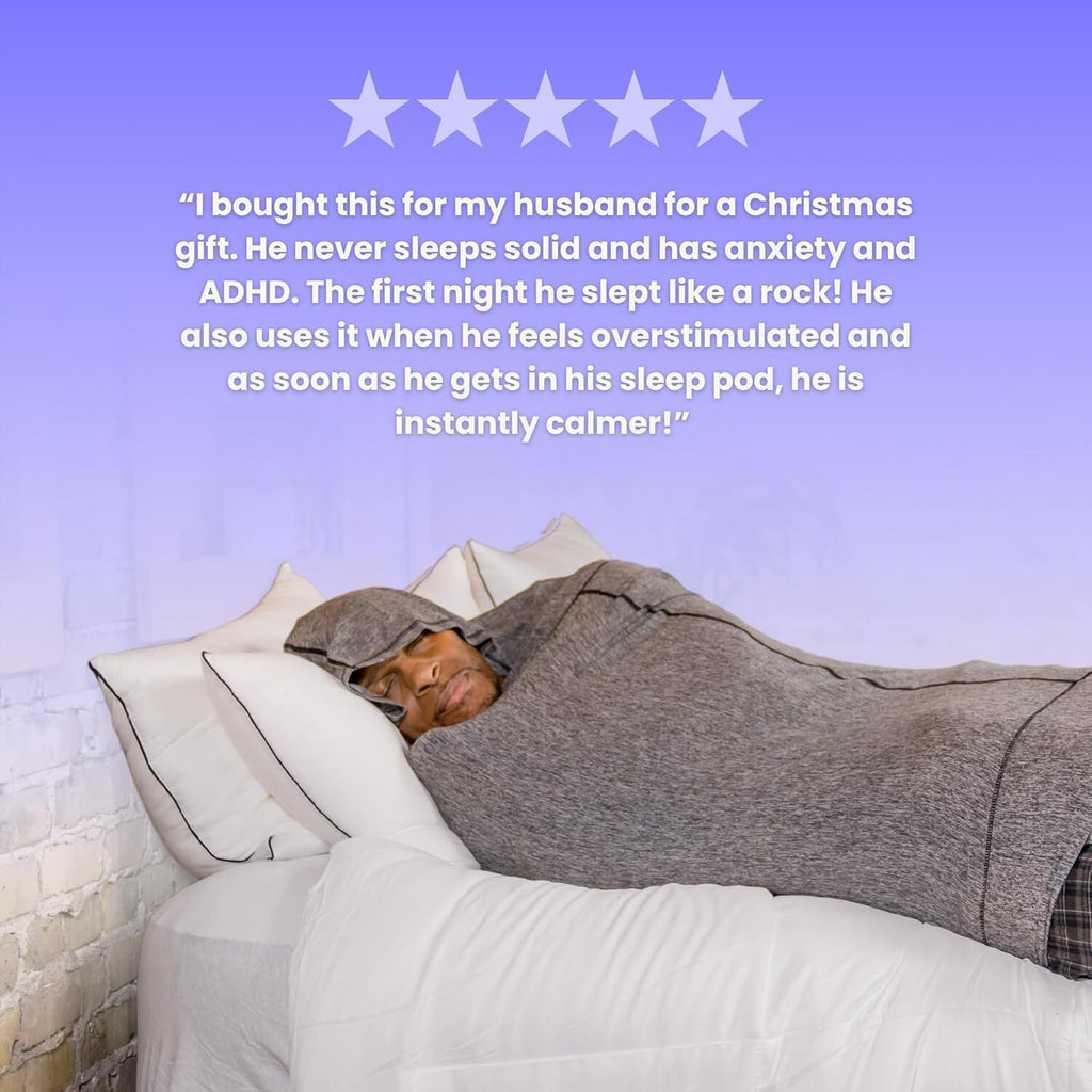 Made from soft, 4-way stretch breathable fabric, this pod regulates body temperature naturallykeeping kids cool (not overheated) all night, no matter how they sleep (side, back, or stomach). Unlike bulky weighted blankets, its lightweight, patented design delivers comforting pressure without heaviness, making it perfect for kids small frames.
