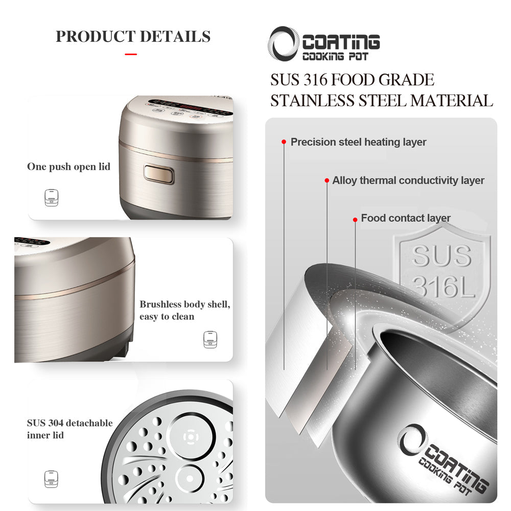 Hoper Layer 4L Electric Rice Cooker IH Heating Zero Coating Non-stick Technology