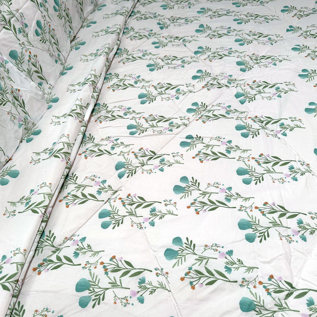 The 3 Pce Light Weight Microfiber Comforter Set Corbett Gardens Queen/King by Hotel Living is a bedding set that will brighten up your bedroom with its floral patterns. Light-weight. Microfiber face fabric with peach skin feel. Approx 200gsm -220 gsm polyester filling. The pillowcase patterns are randomly cut from the matching comforter face fabric. Comforters are quilted, Should there be any minor imperfect prints. An option flip it over as other side has the same prints, is fully reversible!