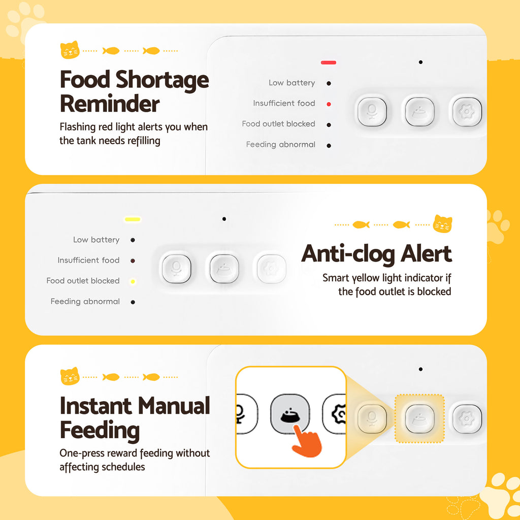 Easily control both feeding and watering functions from anywhere using the phone APP with smart Wi-Fi connectivity (supports 2.4G/5G). Set up to 10 meals a day, portioned just right for your pet, or activate remote feeding at the touch of a button—even when you're away from home. Built-in 10-second voice meal call brings comfort and routine, so your pet feels your presence even when you're not home!