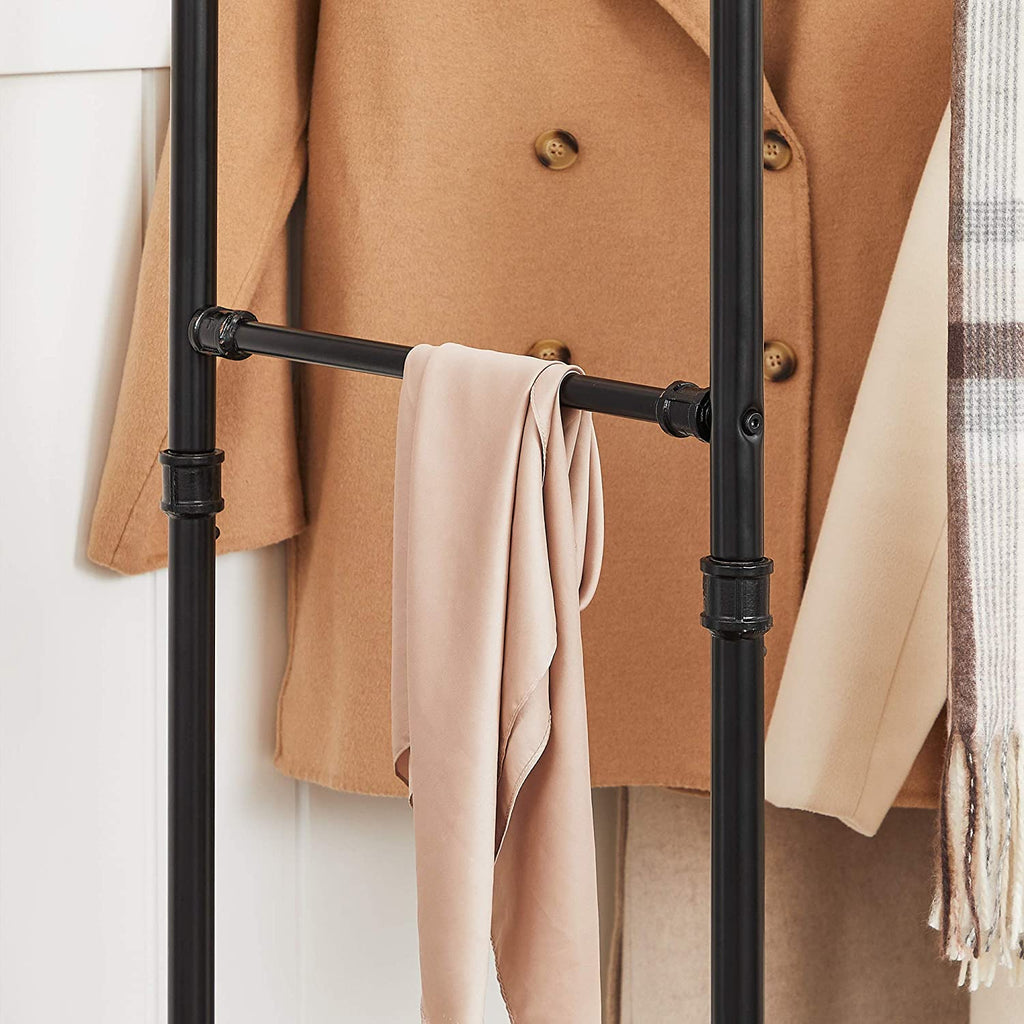 - Maximise your bedroom's potential with this pipe rack. This clever storage solution allows you to transform your space into a mini suite with its double metal rail that is perfect for wrinkle-prone blouses. The off-the-floor bottom shelf is ideal for shoes and bags, while the middle cross bars are perfect for hanging scarves and ties. Achieve more with this pipe rack and make the most of your bedroom.