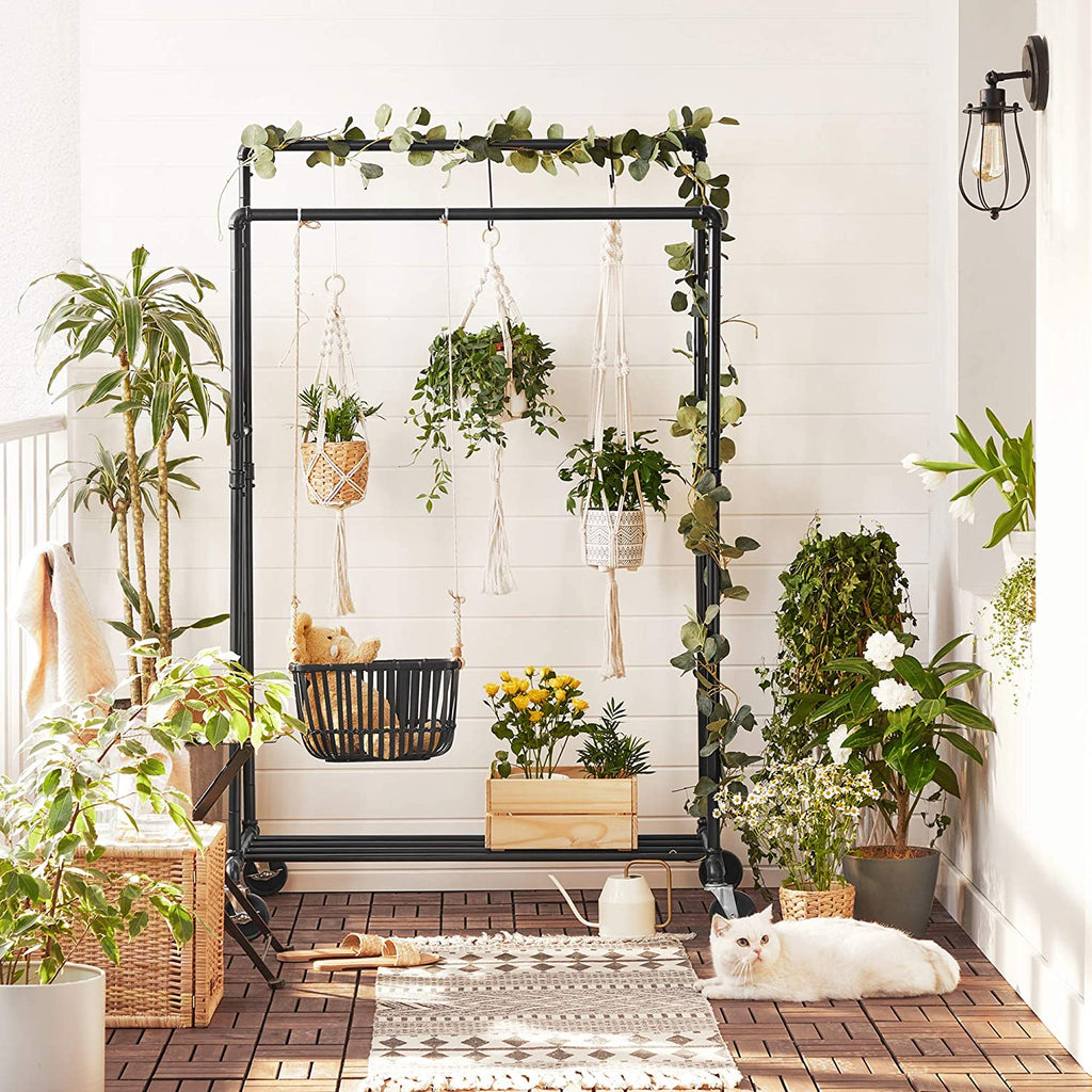 - This chic industrial-style clothes rack is the perfect addition to any home. Its trendy design will make a statement in any rustic apartment or feminine space. Not only can it show off your beautiful clothing, but it can also expand storage in a bedroom or laundry. This clothes rack is a must-have for any retail store or secondary market.