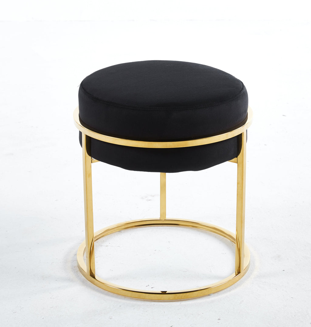 The Soho velvet stool features a brushed gold base. This stunning stool is the perfect addition to your room.