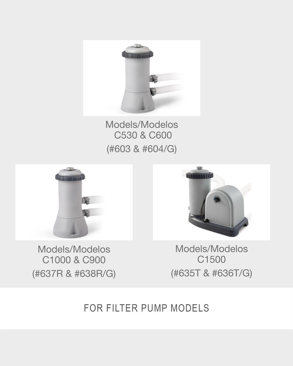 • 28604, 530 GPH Cartridge Filter Pump28638, 1000 GPH Cartridge Filter Pump28636, 1500 GPH Cartridge Filter Pump