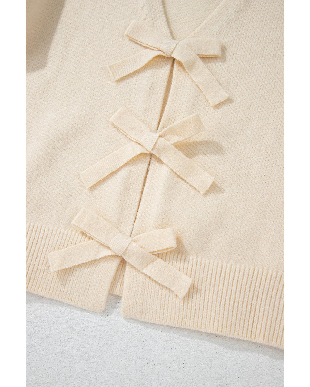 Jet Stream Bowknot Front Loose V Neck Knitted Cardigan - L