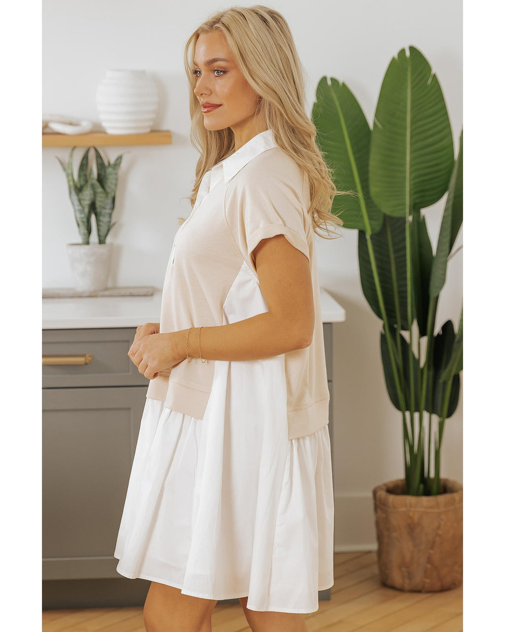 Jet Stream Shirt Collar Buttoned Patchwork Short Sleeve Mini Dress - M