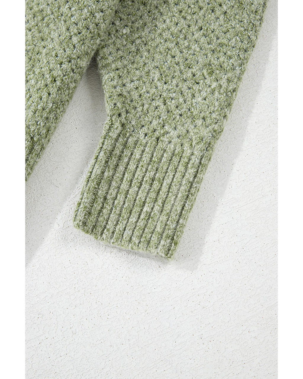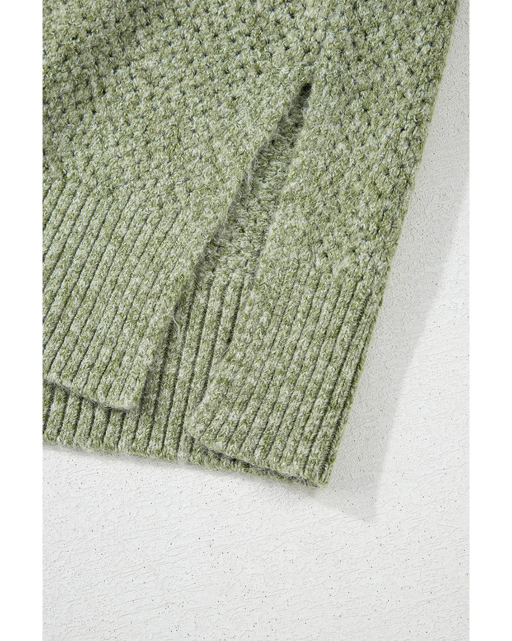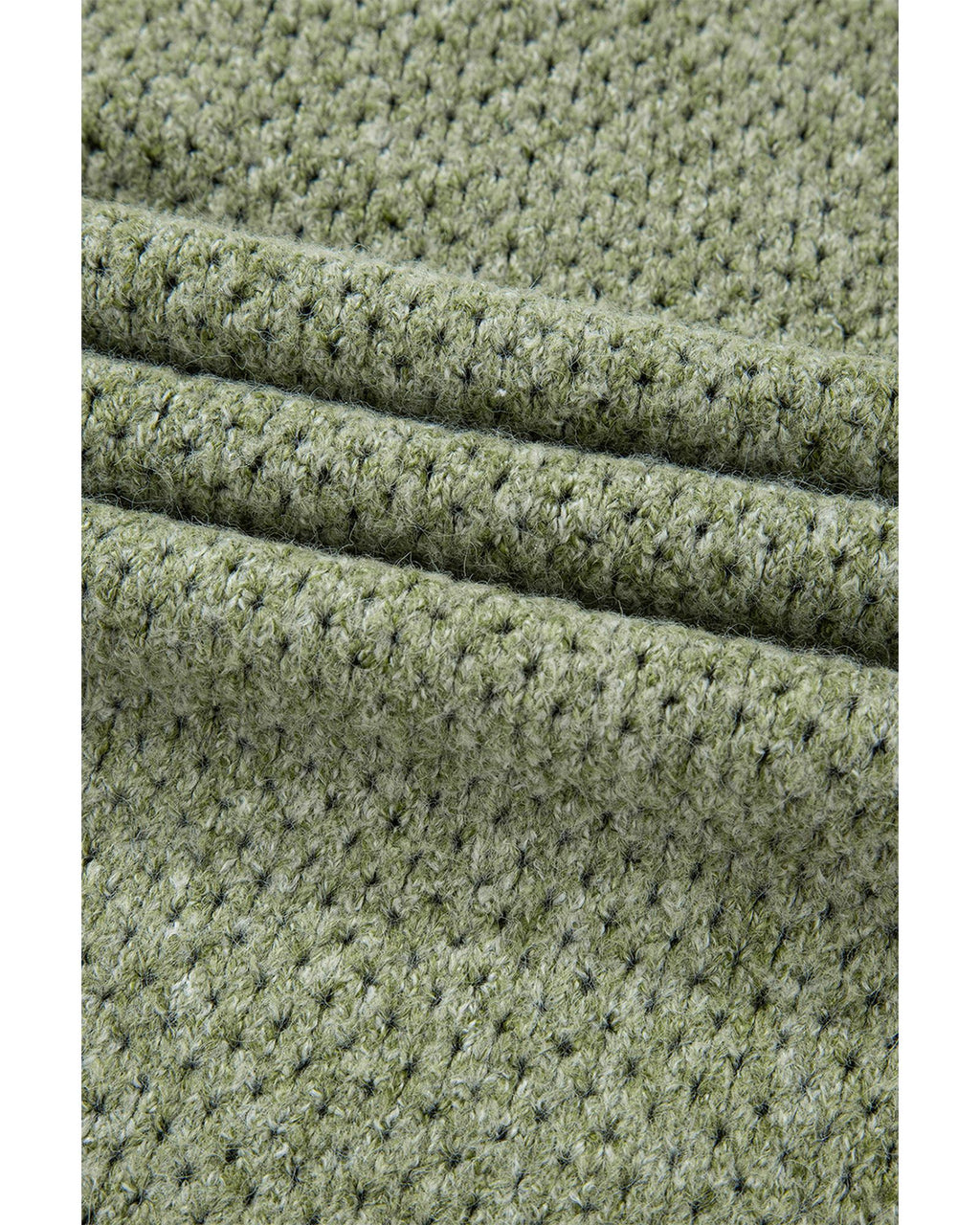Jungle Green Loose Eyelet V Neck Drop Shoulder Sweater - M