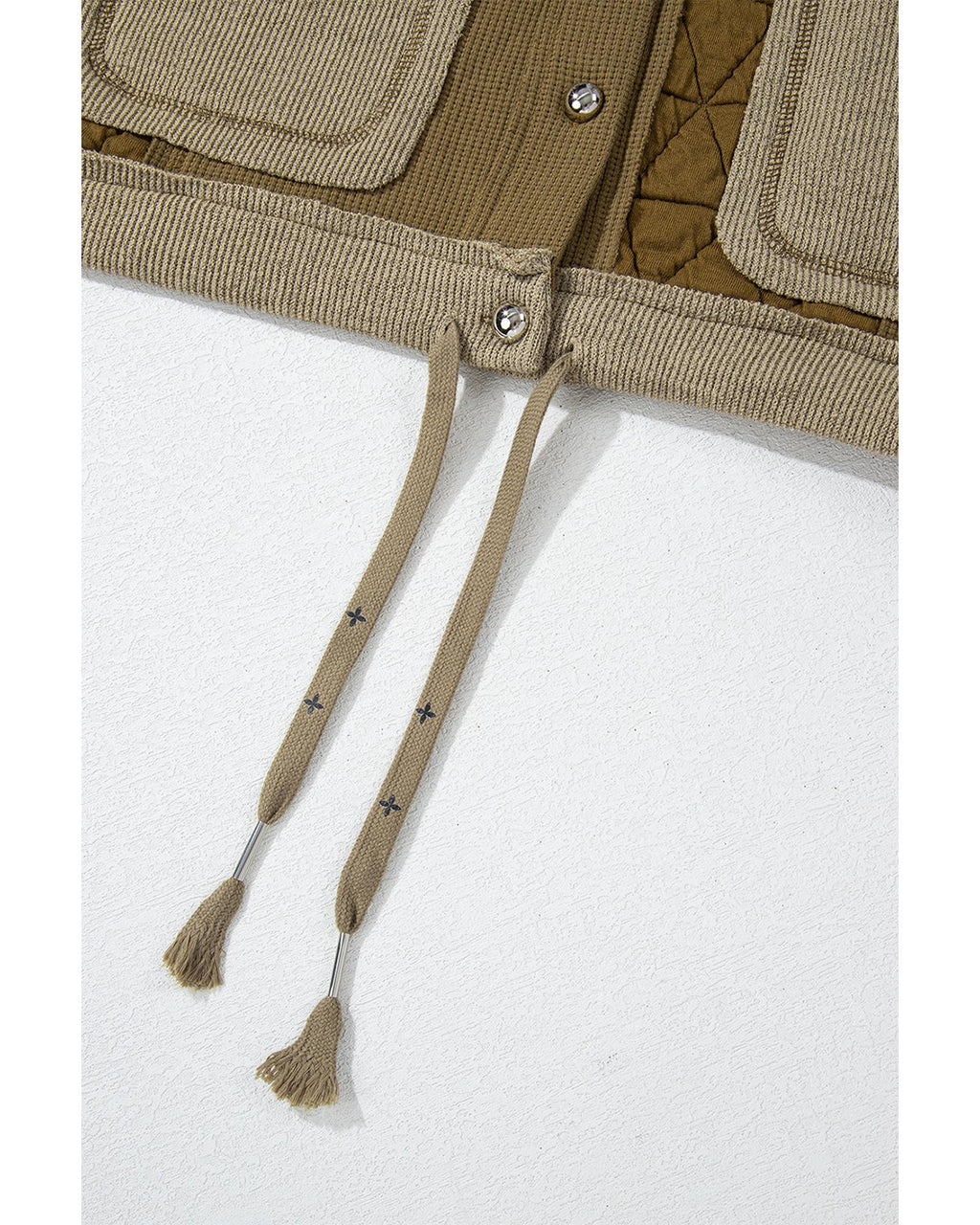 • Jungle Green Quilted Textured Patchwork Loose Fit Hooded Jacket