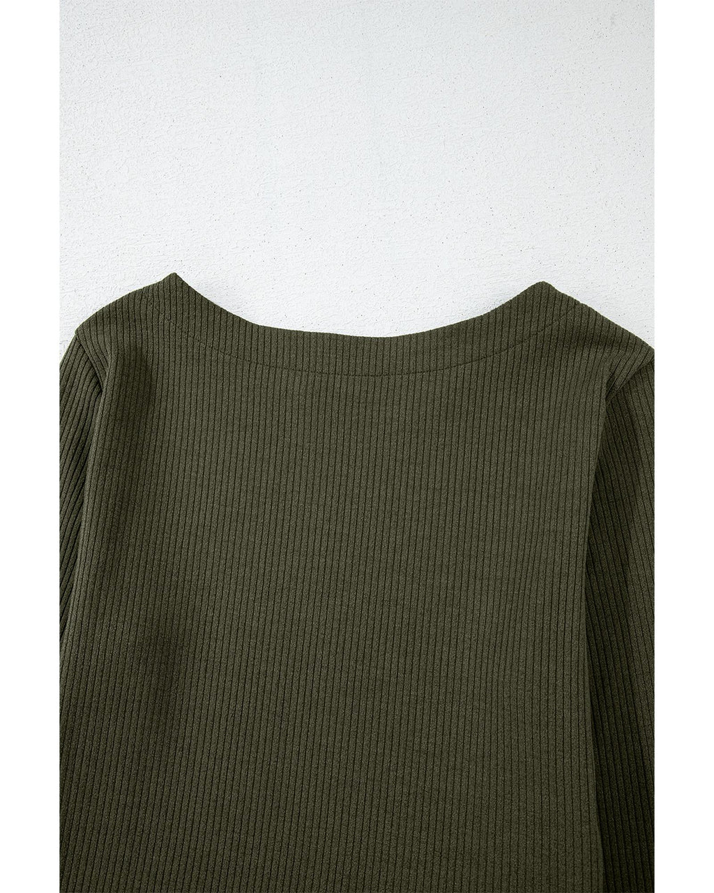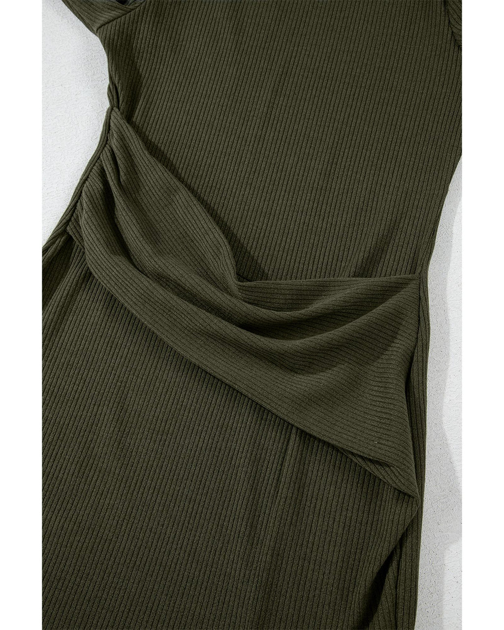 Jungle Green Ribbed Side Slit Ruched Slim Fit Long Sleeve Mini Dress - M