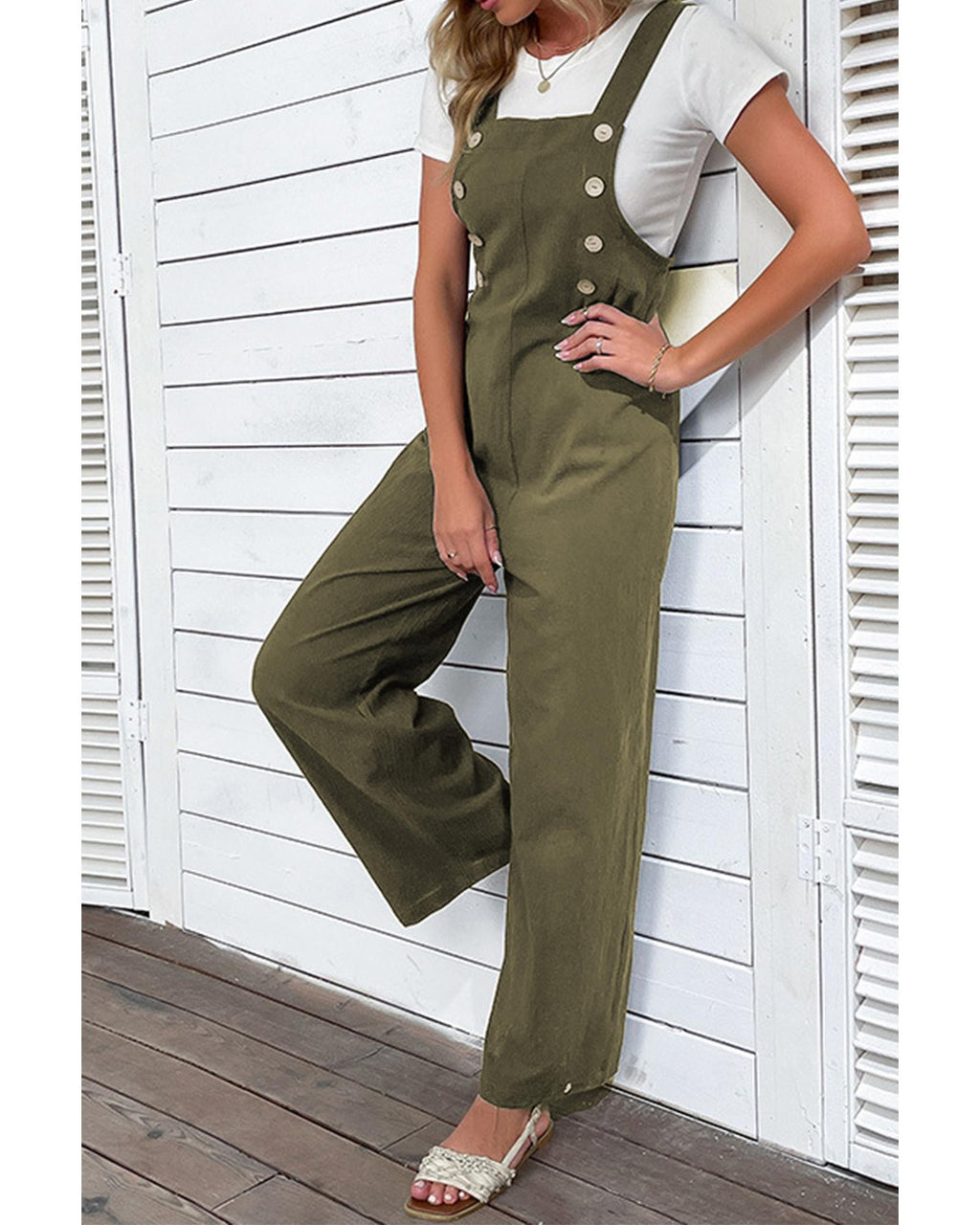 Jungle Green Solid Color Buttoned Straight Leg Overall - L