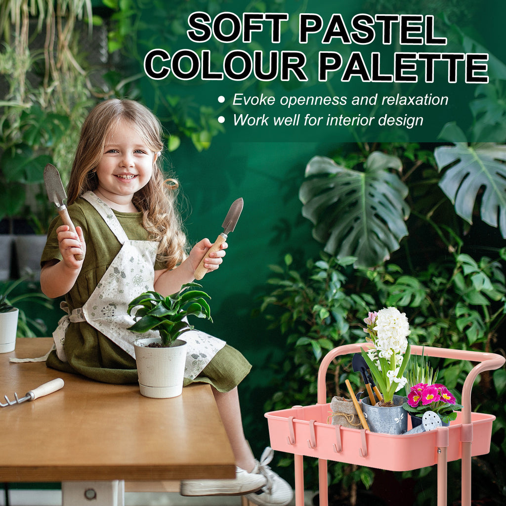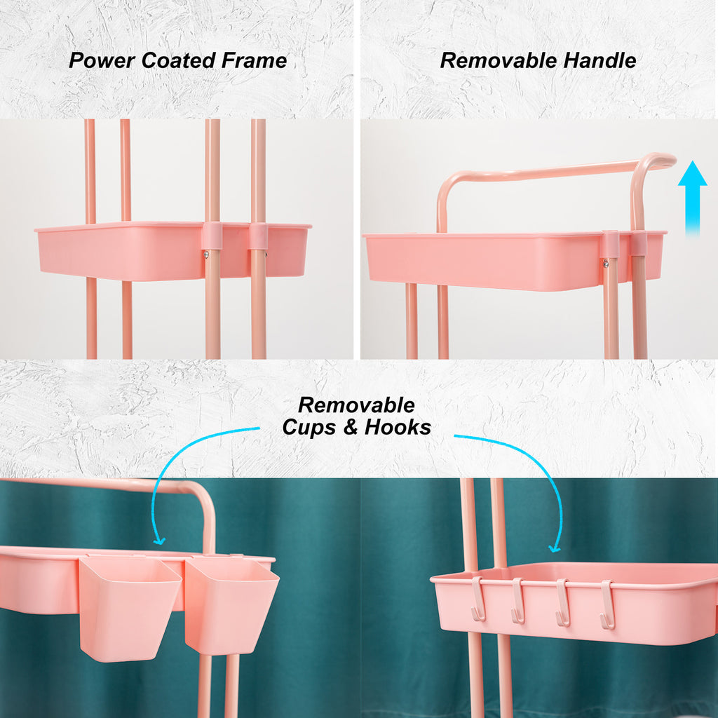 Kandoka Trolley Cart Storage Utility Rack Organiser Swivel Kitchen 3 Tier - Pink
