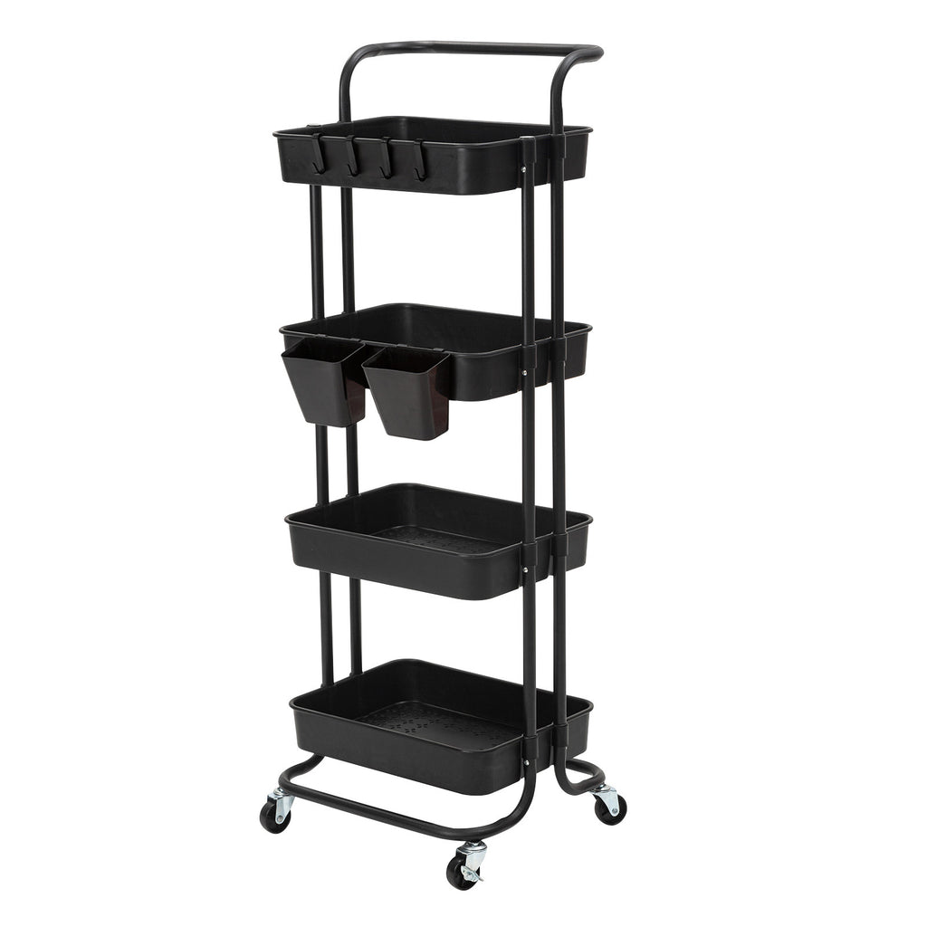Kandoka Trolley Cart Storage Utility Rack Organiser Swivel Kitchen 4 Tier - Black