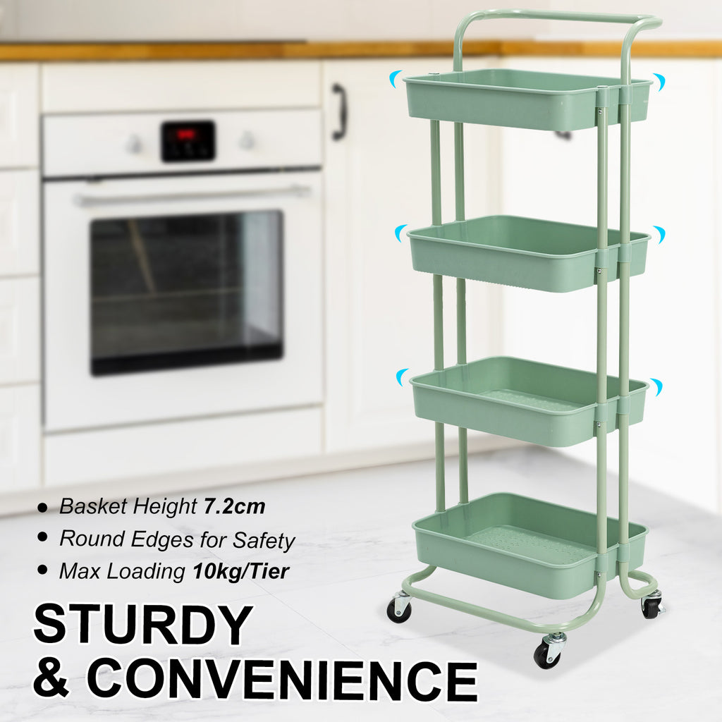 Kandoka Trolley Cart Storage Utility Rack Organiser Swivel Kitchen 4 Tier - Green