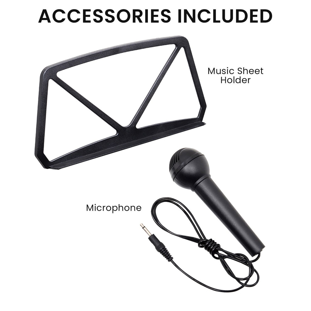 Unleash the composer in you effortlessly through the rhythm programming function, allowing you to effortlessly construct personalised beats and rhythms. The record and playback function, plus the 3-step lesson modes ensure that every practice session goes smoothly. Plus, you can play this keyboard at home or on the go simply by adding batteries! With the Karrera 61-Key Electronic Keyboard by your side, let your musical ideas flow freely and watch your creativity reach new heights.