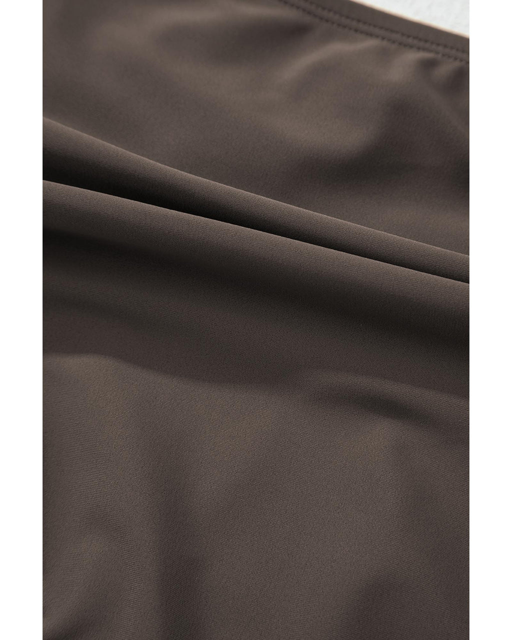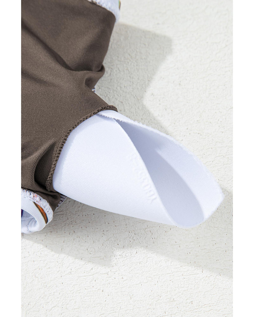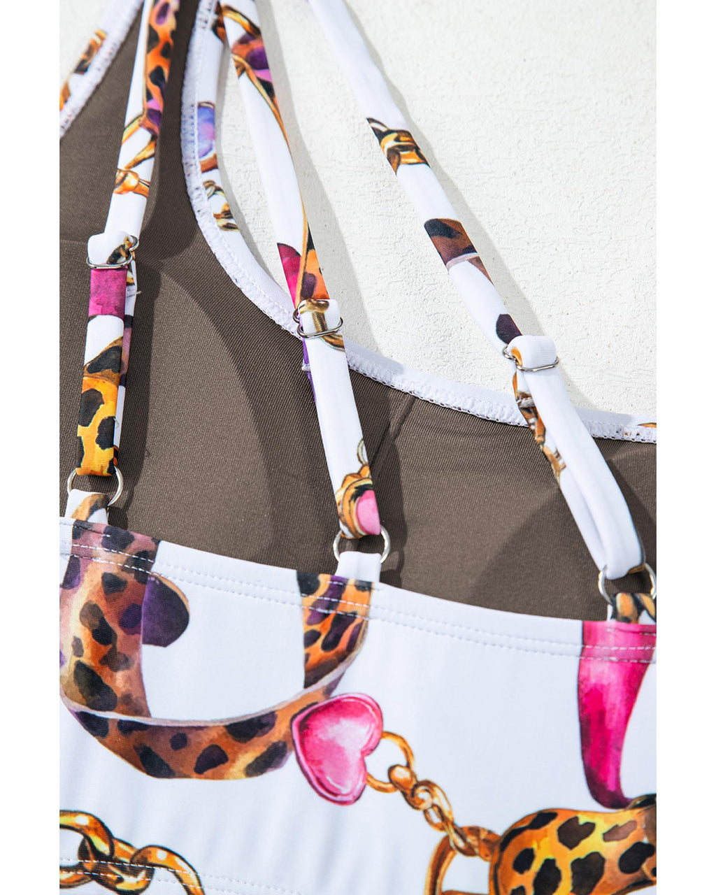 Khaki Abstract Print One Shoulder Ring Linked High Waist Bikini - XL