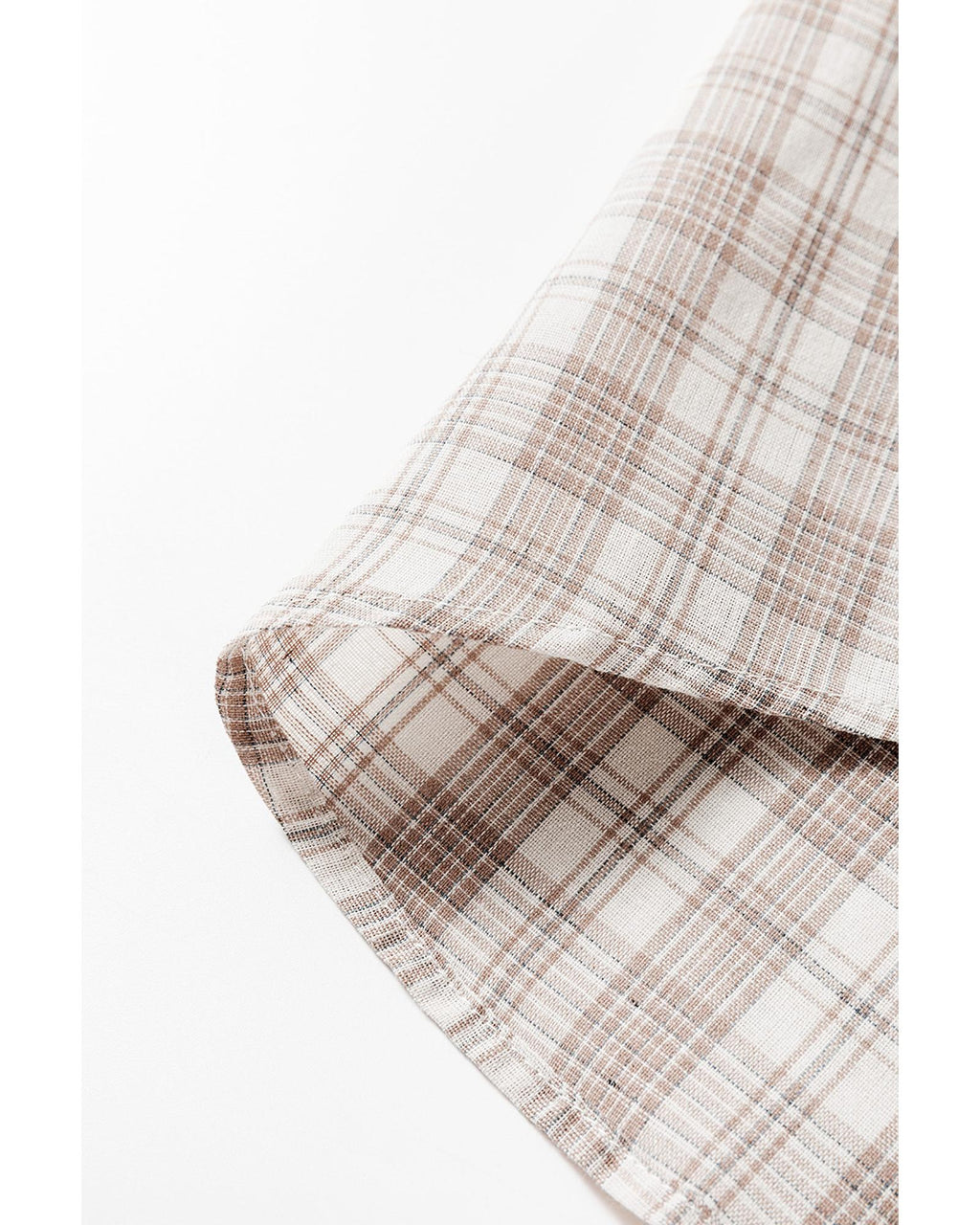 Khaki Checkered Print Loose Fit Buttoned Hooded Shacket - XL