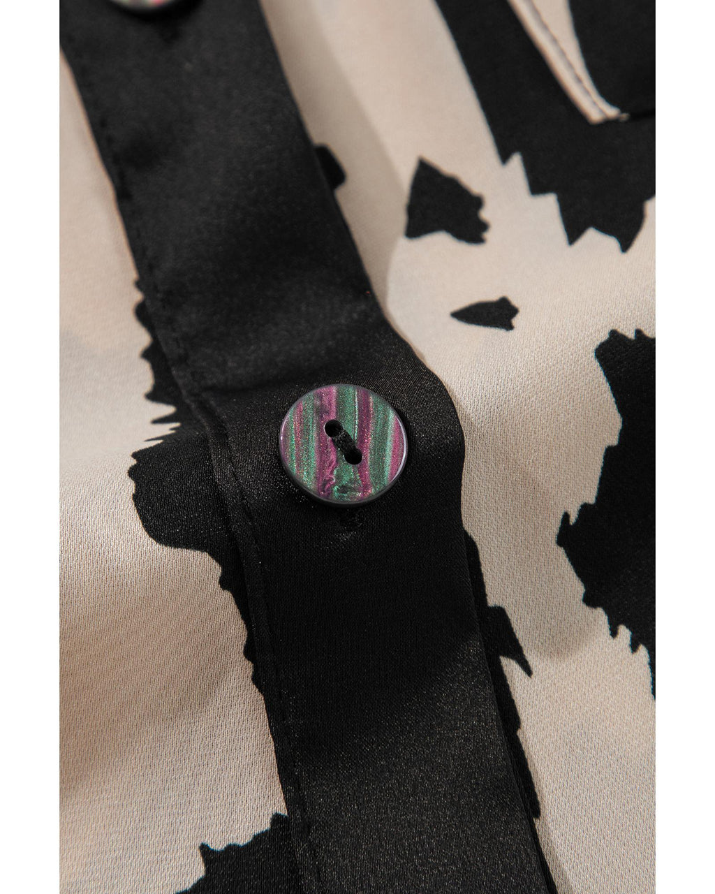 Khaki Cheetah Contrast Trim Loose Fit Two Piece Sleepwear - L