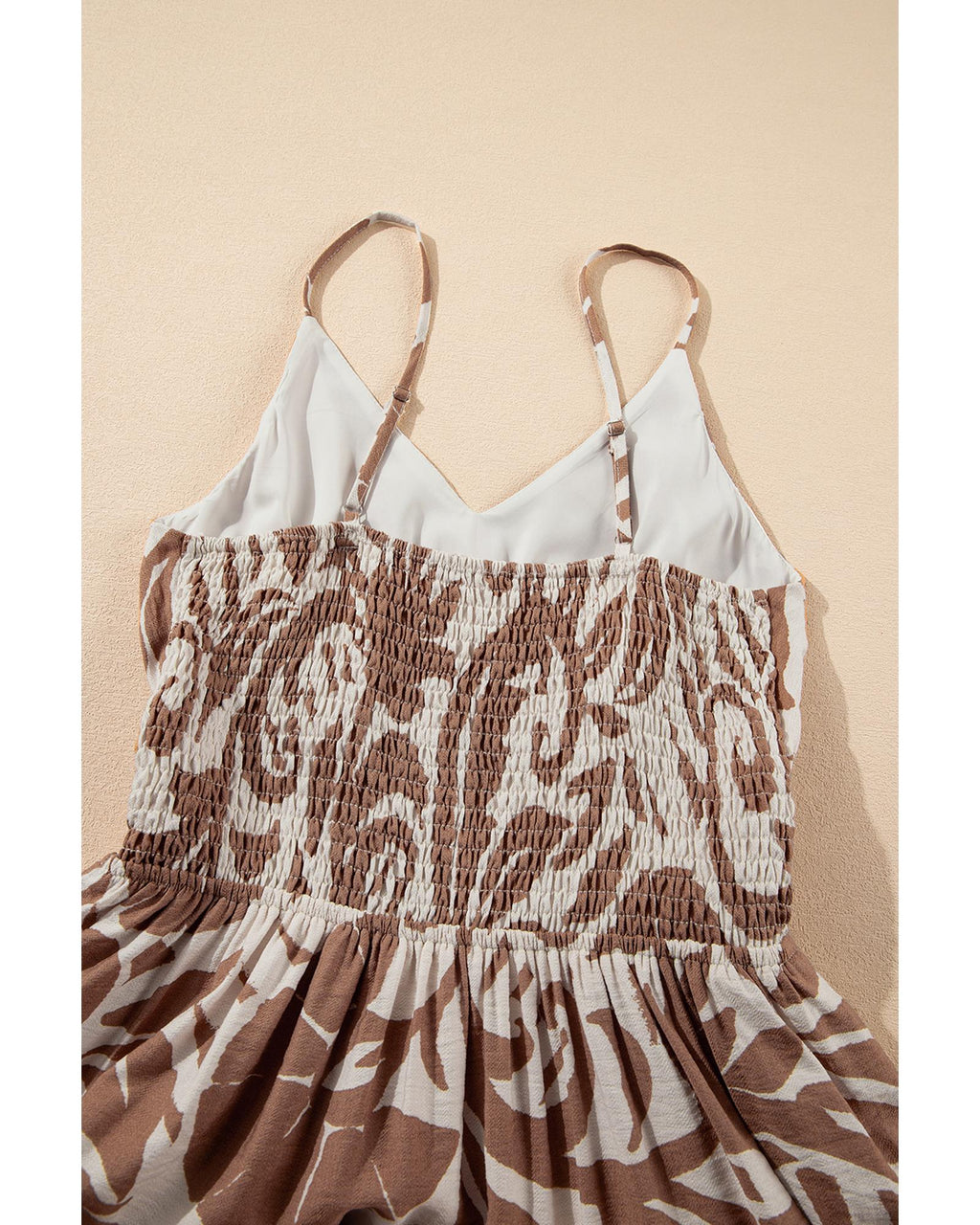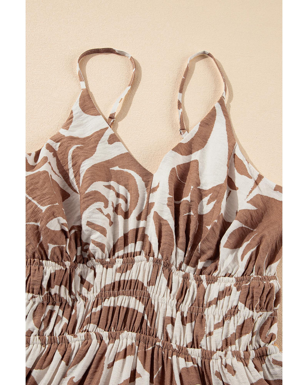 Khaki Floral Shirred High Waist Spaghetti Straps Maxi Dress - S