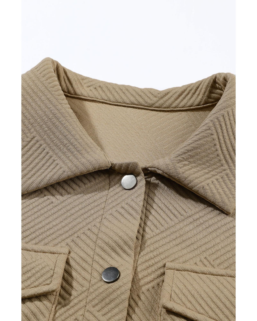 Khaki Solid Textured Flap Pocket Buttoned Shacket - S