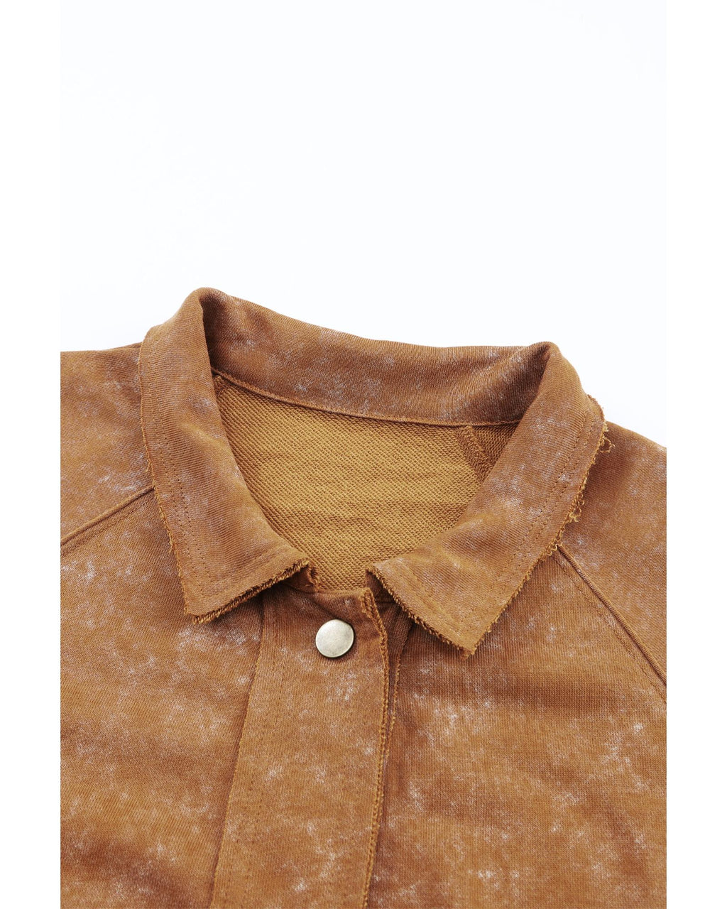 Khaki Vintage Washed Flap Pocket Button Shacket - M