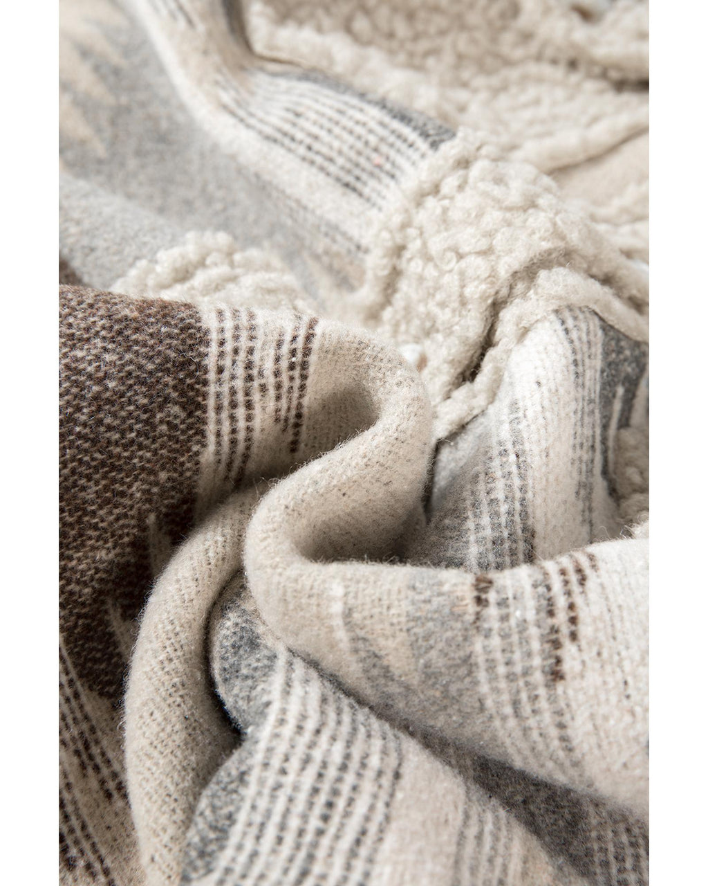 • Khaki Western Aztec Print Sherpa Splicing Buttoned Flap Pocket Coat
