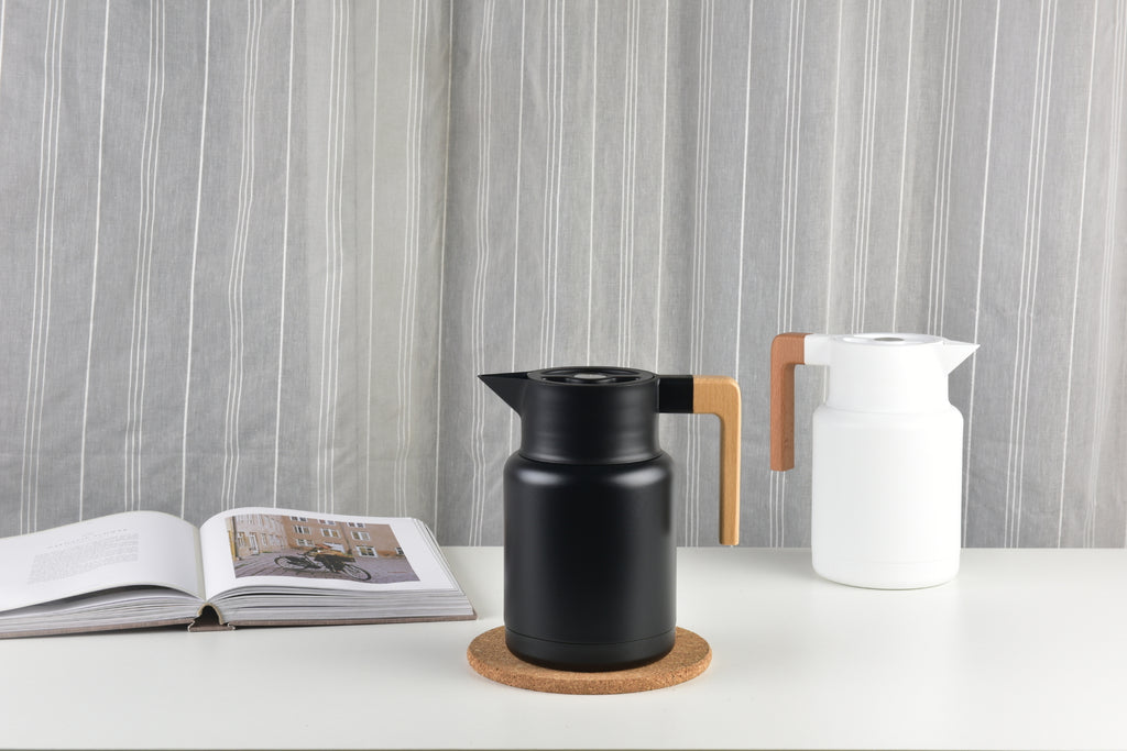 The Kylin 304 stainless steel Japanese Vacuum Jug 1.3L is a sleek and functional way to keep your beverages hot or cold for extended periods. Made from high-quality 304 stainless steel, this vacuum-sealed jug is durable and long-lasting. The inner chamber is vacuum-sealed to maintain the temperature of your beverages for hours, whether hot or cold. With a 1.3L capacity, this jug is ideal for serving a few people at once. The Kylin Japanese Vacuum Jug features a push-button spout for easy pouring of your beverages. The spout is designed to prevent spillage and mess, ensuring that your drinks stay in the jug and not on your table. The handle is ergonomically designed to provide a comfortable grip and is securely attached to the jug, making it easy to carry and pour. This jug is perfect for use at home, in the office, or for outdoor activities such as picnics or camping. It's also easy to clean, with a wide mouth that allows for easy access to the inside of the jug.
