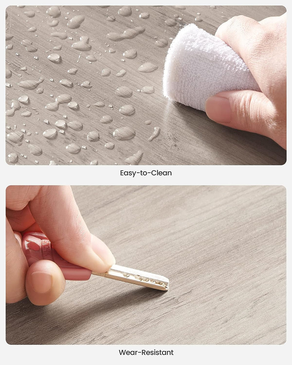 - This large desk top provides a sturdy and reliable support for all your needs. Crafted with particleboard, it can bear a load of up to 50 kg, and is held up by a strong steel frame for maximum stability.