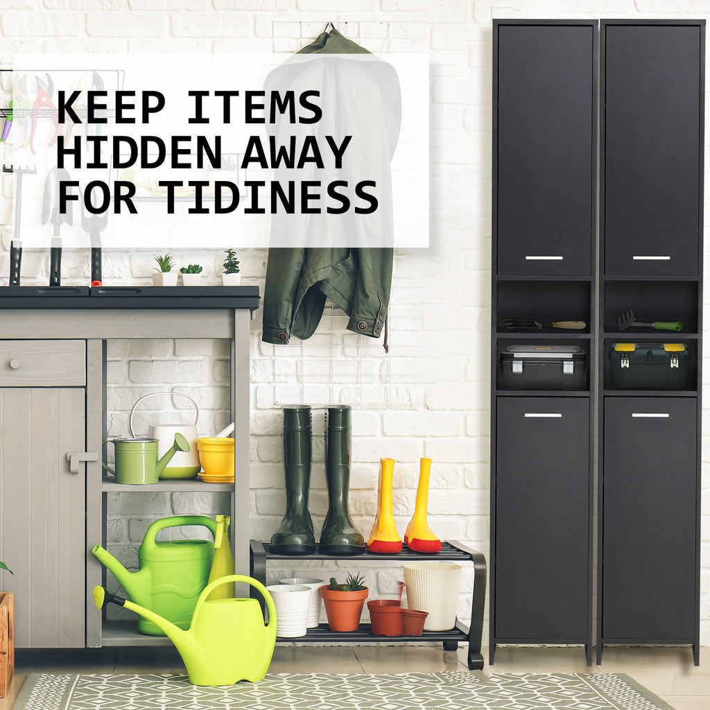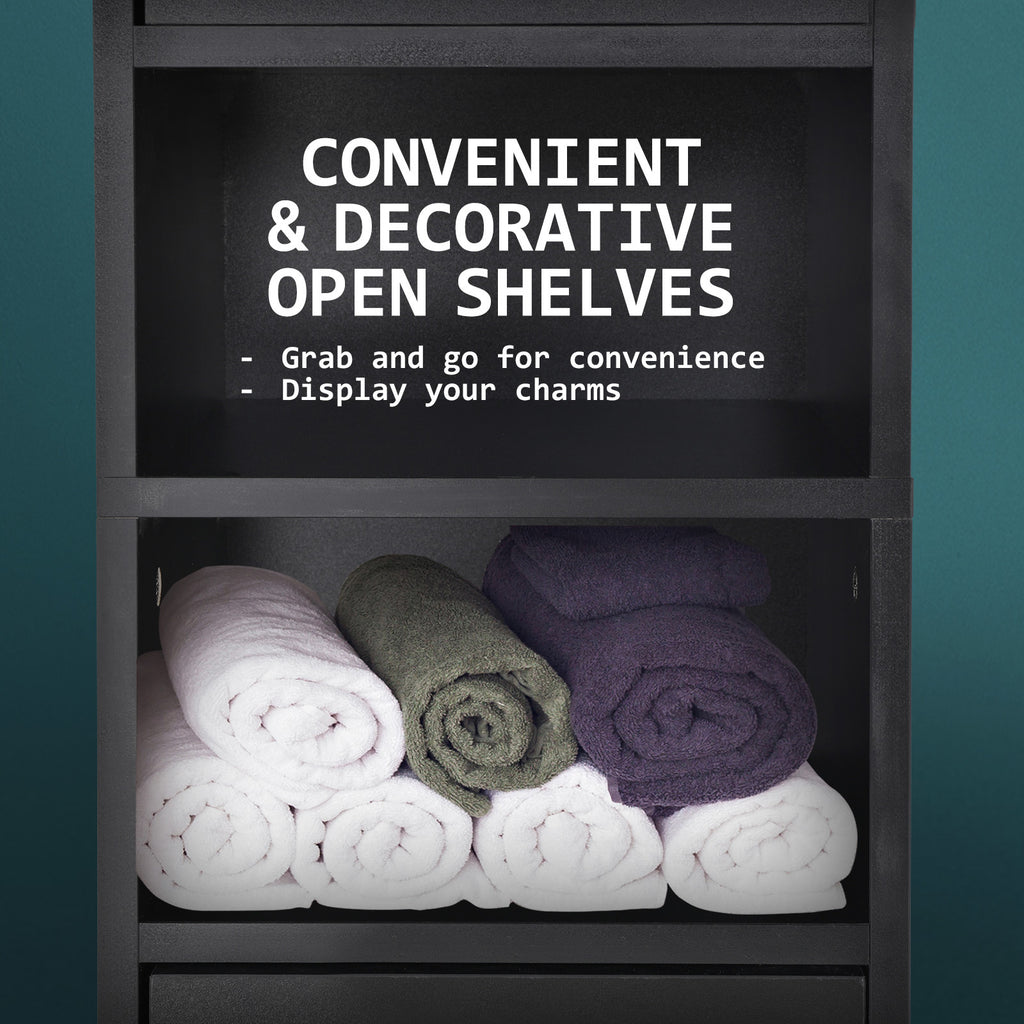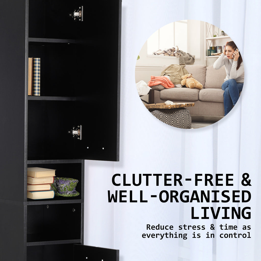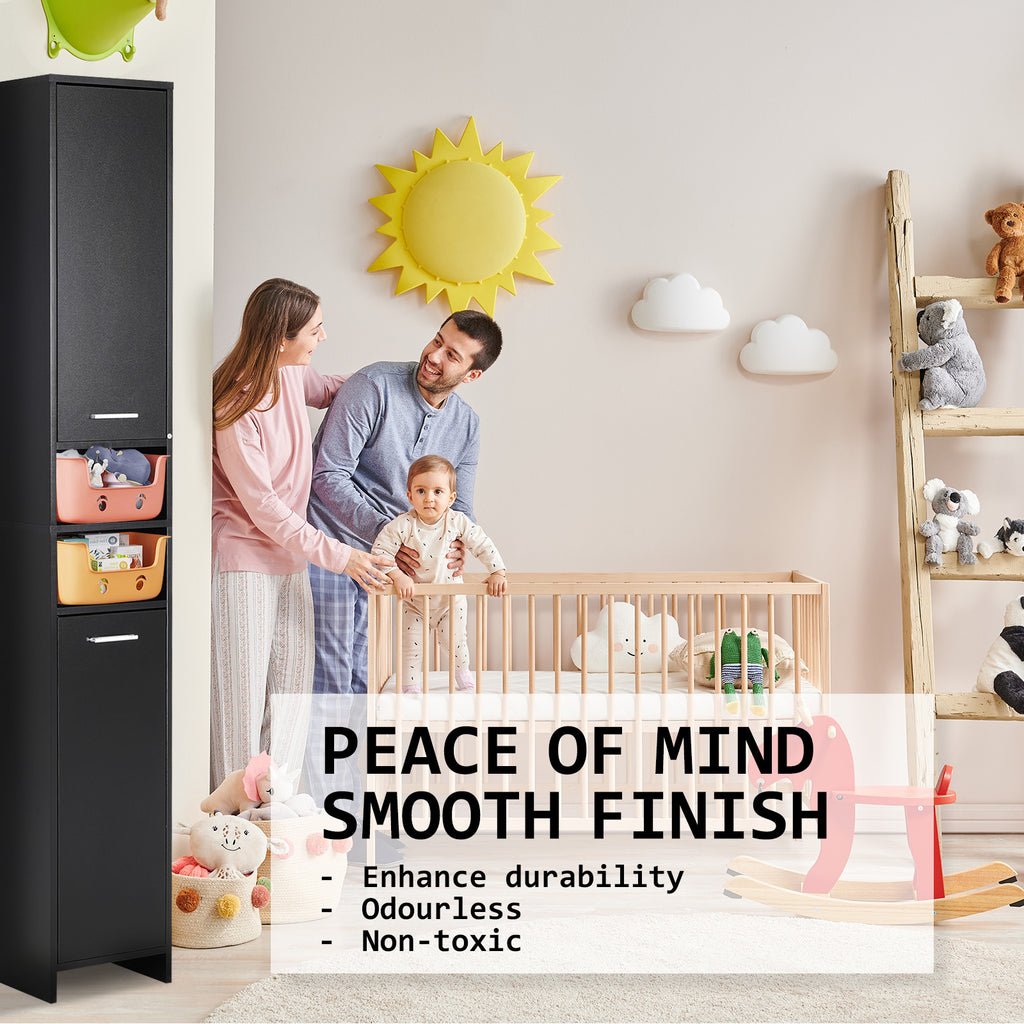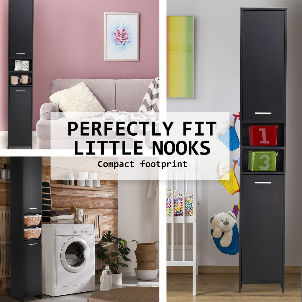La Bella Bathroom Storage Cabinet 185cm Organiser Cupboard Shelf Tall Slim - Black