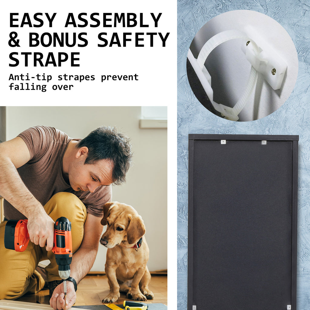 Not least, the 8 tiers of storage cabinet is made of environmental-friendly wood covered with a melamine finish for extra durability. Plus, this product is made from a non-toxic chemical keeping the safety of your family in mind.
