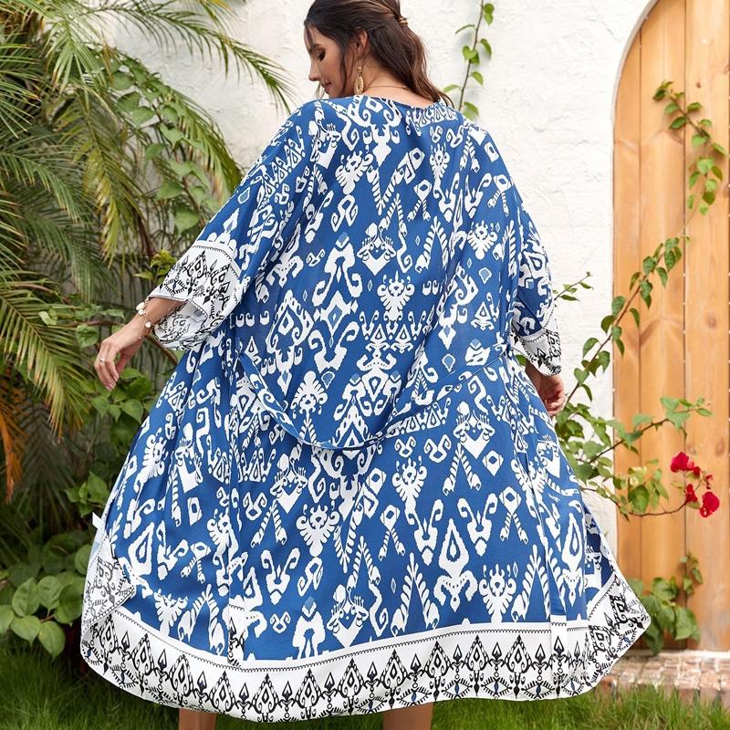 Ladies Beach Printed Shawl Vacation Bikini Sun Protection Cardigan Blouse - Size One Size Black 3816-3