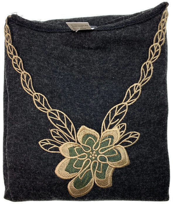 Beautiful, classic v-neck thermal long sleeve spencer thermal top with floral embroidered detail to keep you warm during the colder months.