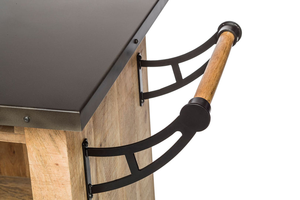 This unique Large Industrial Style Wooden Bar Cart Drinks Trolley with Handle made with an Iron Top and Strong Wood is the perfect addition to any urban space. The Wheels allow for easy manoeuvring, while maintaining a Vintage presence. It further can be used as a moveable Kitchen Island, perfect for Storing Stemware, Wine and Spirits. With Cabinets built within, your essential items will always have a place. And further with the added functionality of a handle, manoeuvring this cart was never this easy. Boasting a heavy structure, this product promises a lasting quality and ensures all your requirements are met.