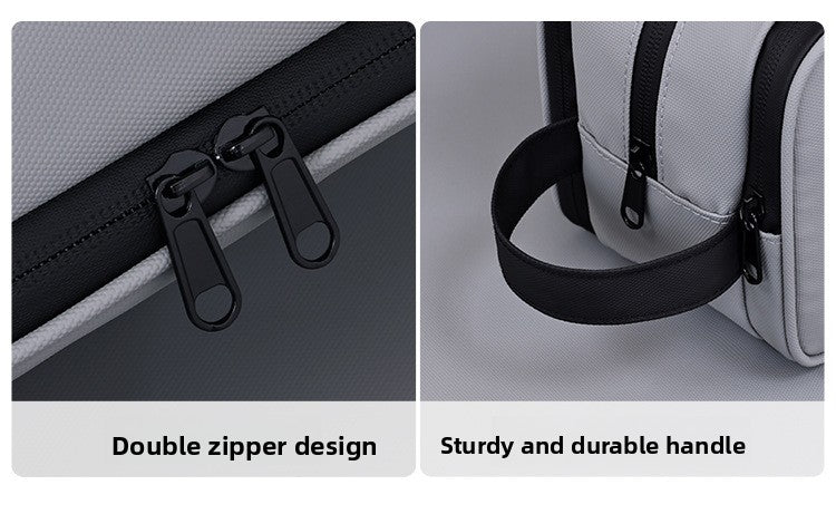 This toiletry bag is the ultimate solution for keeping your grooming kit organized. The "Elite" design focuses on maximizing space without compromising on style. The main compartment is spacious enough for full-sized skincare bottles, while the transparent waterproof pocket allows you to quickly locate items and manage wet gear hygienically. The durable double zippers ensure smooth operation, and the robust construction stands up to the rigours of daily use.