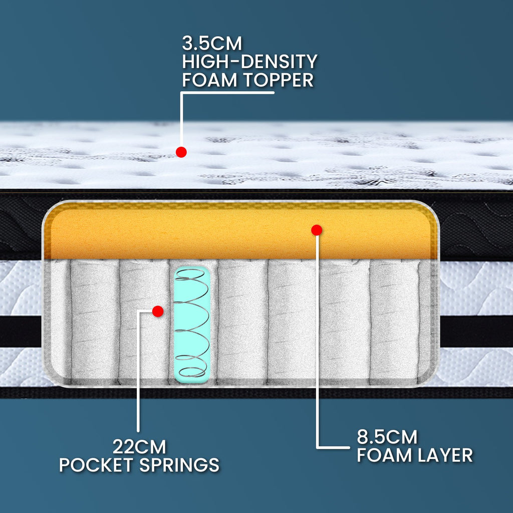 - 5-zone pocketed springs (22cm high)