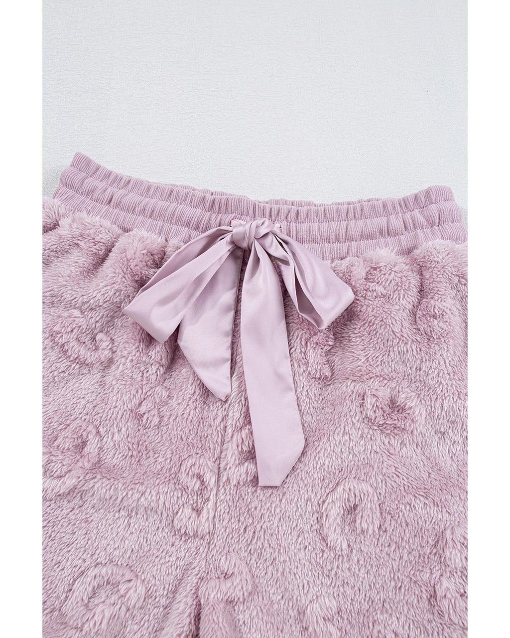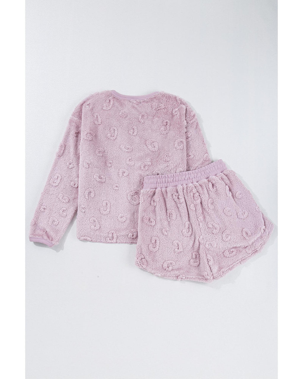 • Lavendula Textured Leopard Fleece Loose Two Piece Lounge Set