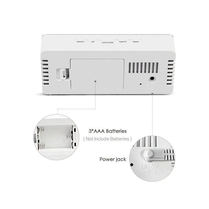 LED Mirror Desk Clock with Snooze Function & Temperature Display Digital Alarm Clock, Large LED Display Mirror Clock with Snooze, Adjustable Brightness, Suitable for Home Bedroom Living Room Office Travel (White)