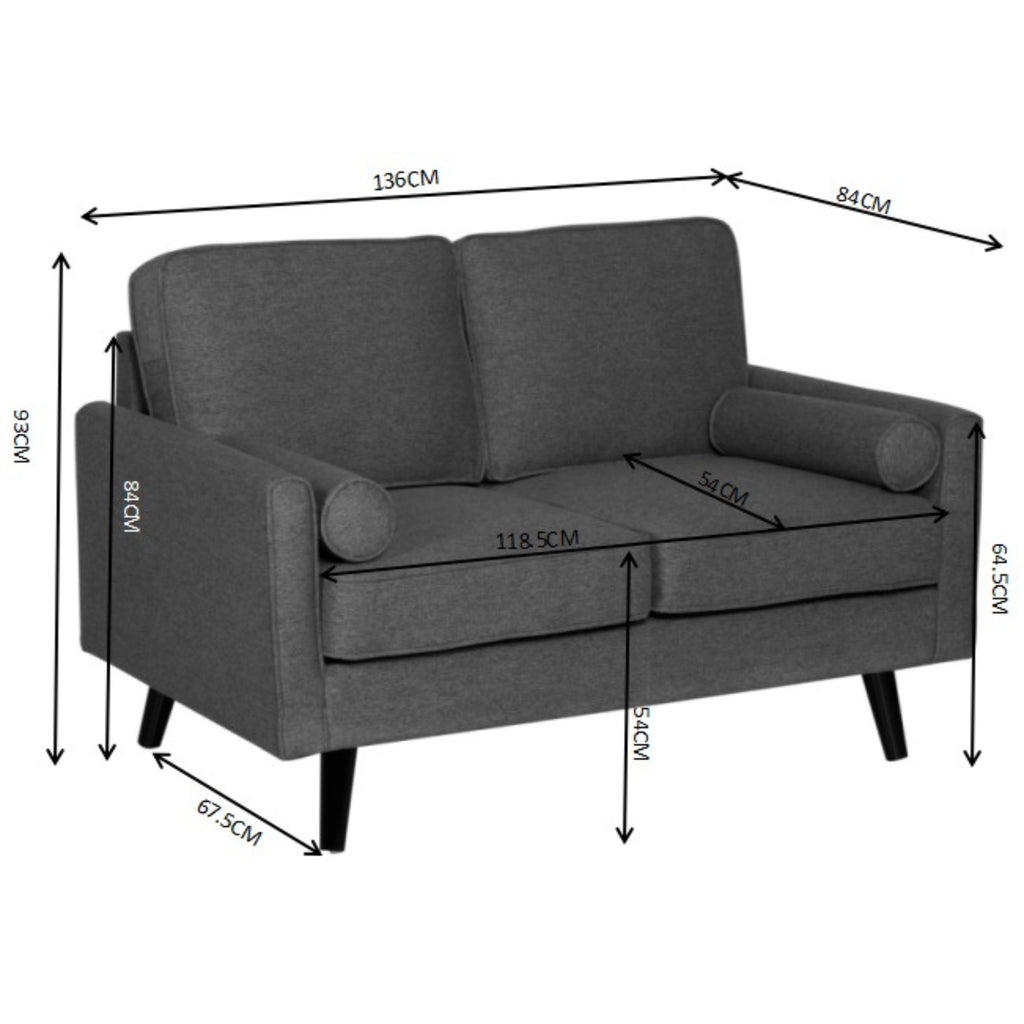 This compact, stylish, and comfy set of 2.5- and 2-seater sofas in dark grey is a visual treat in itself. They look even more beautiful with their narrow arms and elevated bases. Plush seat and back cushions with seam details add to their elegant look. There are loose seat cushions with bolster cushions for added comfort. The Scandinavian-style furniture pieces are upholstered in a plush 100% polyester fabric. The upholstery has a smooth fit due to the intact tailoring on the frame. The solid plywood frame makes the sofa light and highly durable. The strong frame with seating support made of webbing, dense foam, pocket springs, and S-springs ensures the comfort and relaxation that you seek. Tapered, solid wood legs in black give the furniture pieces a robust base. The sofas are easy to assemble and long-lasting. The set comes with a 1-year warranty.