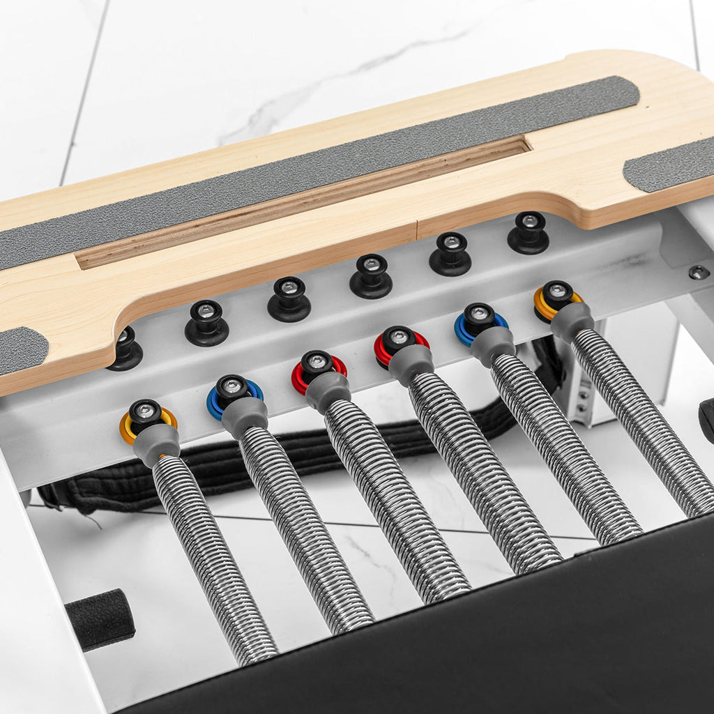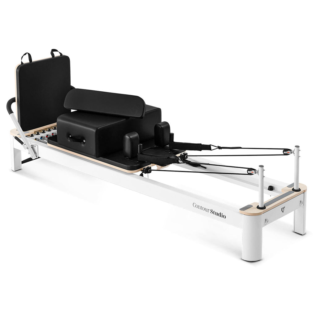 Elevate your gym space with the truly modern Contour Studio Pilates Set, designed for professional and commercial use. Seamlessly blending durability and contemporary aesthetic, the Contour Studio is crafted with a premium-quality aluminium frame, guaranteed to endure intense, daily usage in a commercial setting. The dynamic spring system allows for multiple resistance settings, ensuring a transformative full-body workout for users of all fitness levels. Experience a comprehensive, premium workout experience with this versatile, professional-grade equipment, enabling you to help achieve your fitness goals. Included in the set are the Pilates box, jump board and foot strap, making it a comprehensive package for all your studio needs.