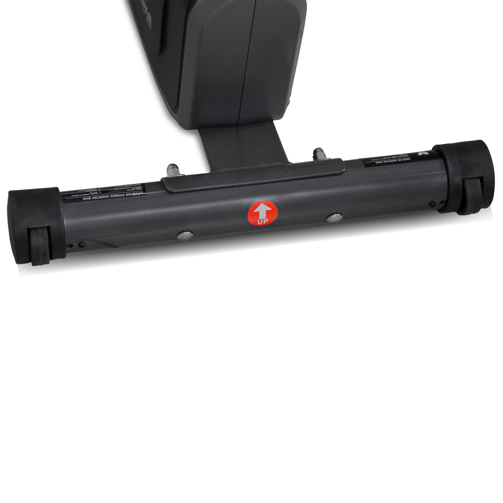 Find a fulfilling and user friendly workout with the Lifespan Fitness EXER-58 exercise bike. Variable manual resistance offers eight levels of workout intensity at the turn of a dial. With a heavy duty magnetic flywheel, the tension created is smooth and silent, making cadence consistent, especially paired with the heavy duty belt drivetrain. GENERAL - Manual Tension, 8 levels of resistance - Handle Bar: Fixed - Belt Drive - Three piece crank - Special seat designed for maximum comfort - Includes up/down & - forwards/backwards adjustments - Includes foot straps to secure footing during exercise - Features: Smooth and silent belt transmission - Saddle vertically and horizontally adjustable system - Maximum user weight: 100kg - Suggested Maximum user height: 190cm - Top Seat to Bottom Pedal Arc Range: TBD COMPUTER AND PROGRAMS - Computer: LCD Computer Display - Shows: Time, Speed, Distance, Calories, Pulse & Room Temperature (�C), RPM, Odometer TECHNICAL - Frame: Tubular Steel Assembly Required: This product comes partially assembled in a box with assembly instructions included.