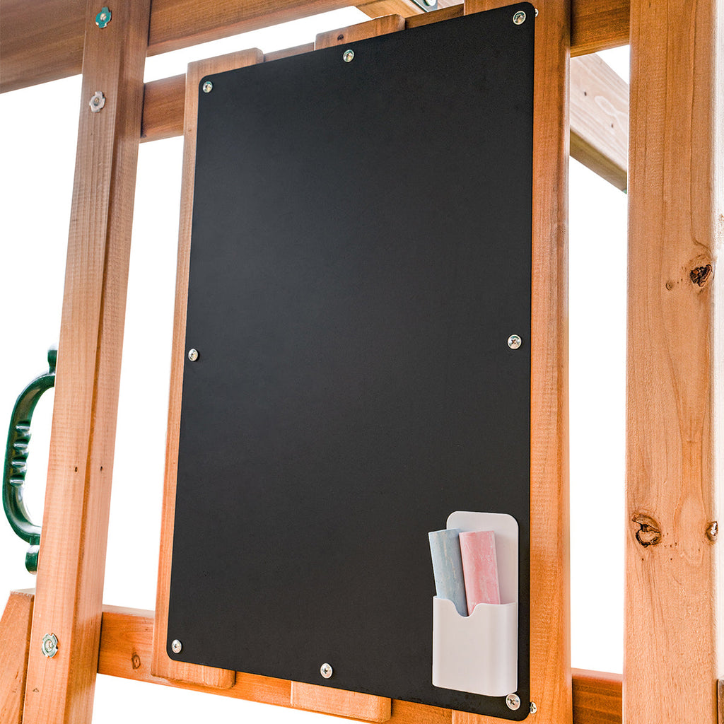 • 120cm high raised playhouse with noughts crosses, telescope chalkboard