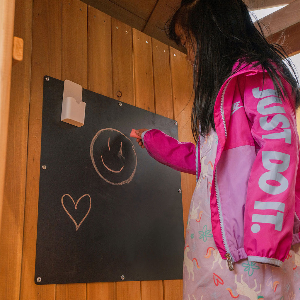 • 119cm high raised playhouse with windows and viewing deck