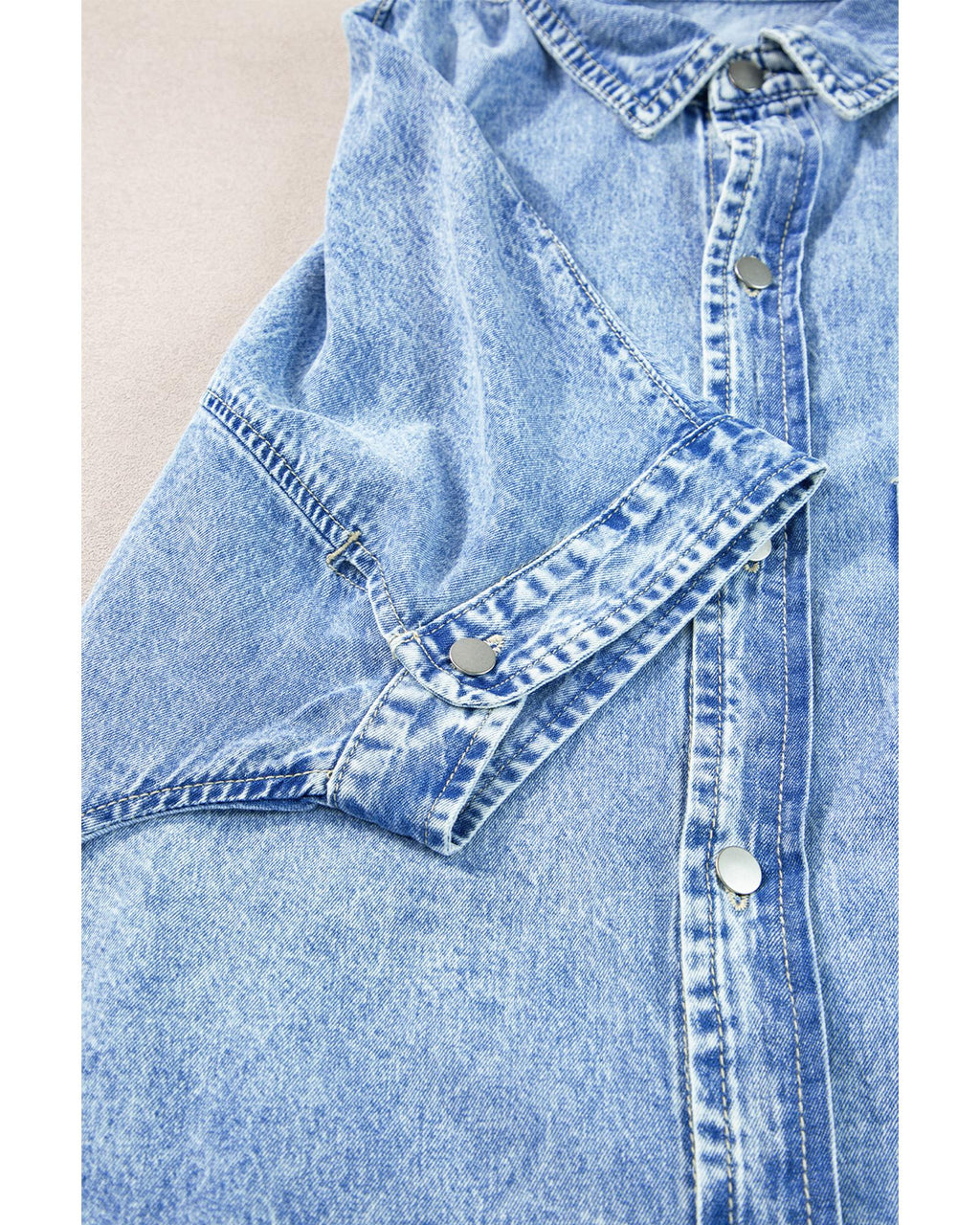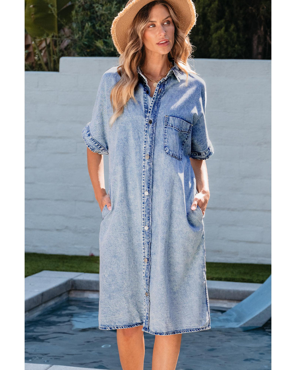 Light Blue Loose Medium Wash Short Sleeve Shirt Chambray Dress - L