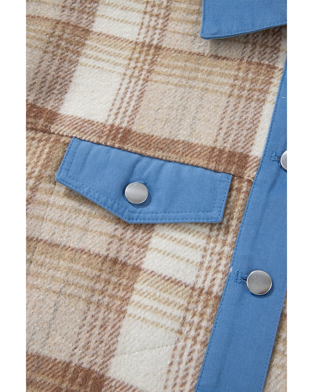Light French Beige Plaid Patchwork Flap Detail Button Up Shacket - S