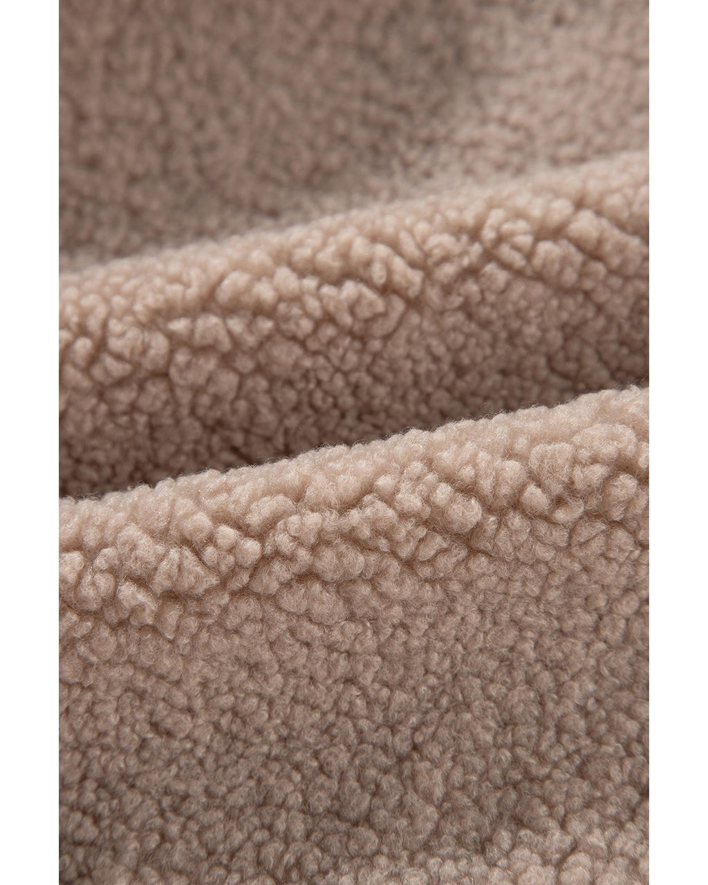 Light French Beige Zipper Pocketed Winter Fuzzy Jacket - S