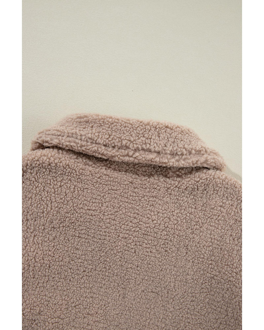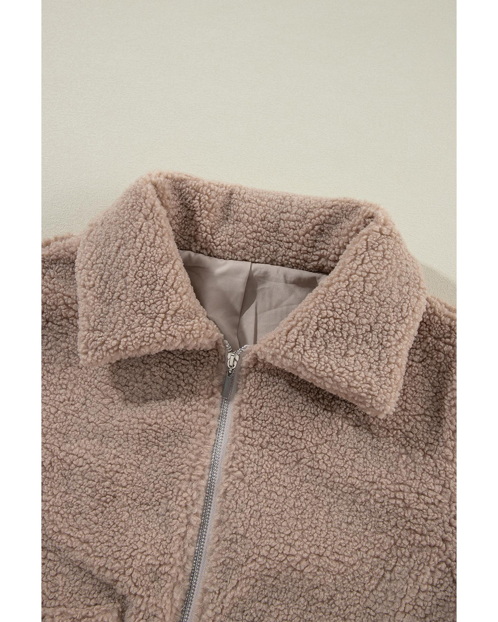 Light French Beige Zipper Pocketed Winter Fuzzy Jacket - XL