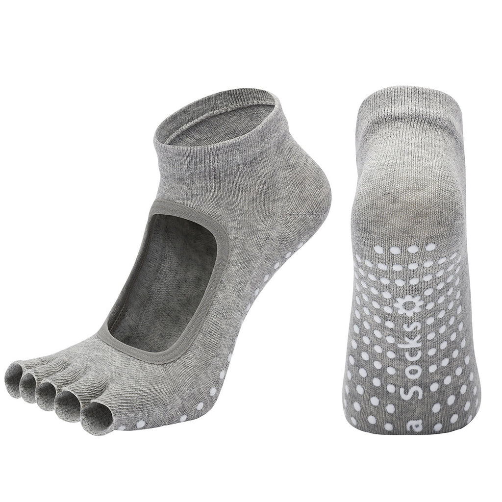 Light Grey 3-Pack Women's Non-Slip Five-Finger Yoga Socks - Open Back Combed Cotton Pilates & Fitness Grip Socks for Professional Exercise