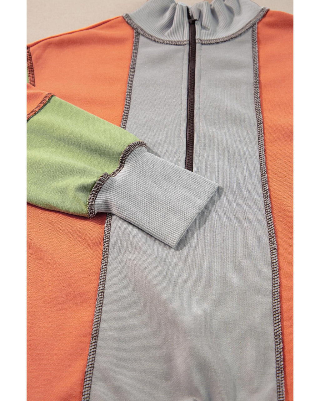 • Light grey color block half zipper sweatshirt