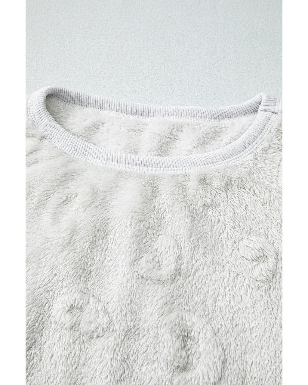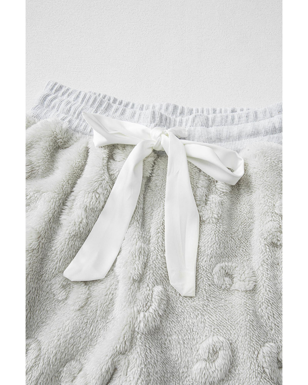 Light Grey Leopard Textured Loose Fit Fleece Lounge Set - L