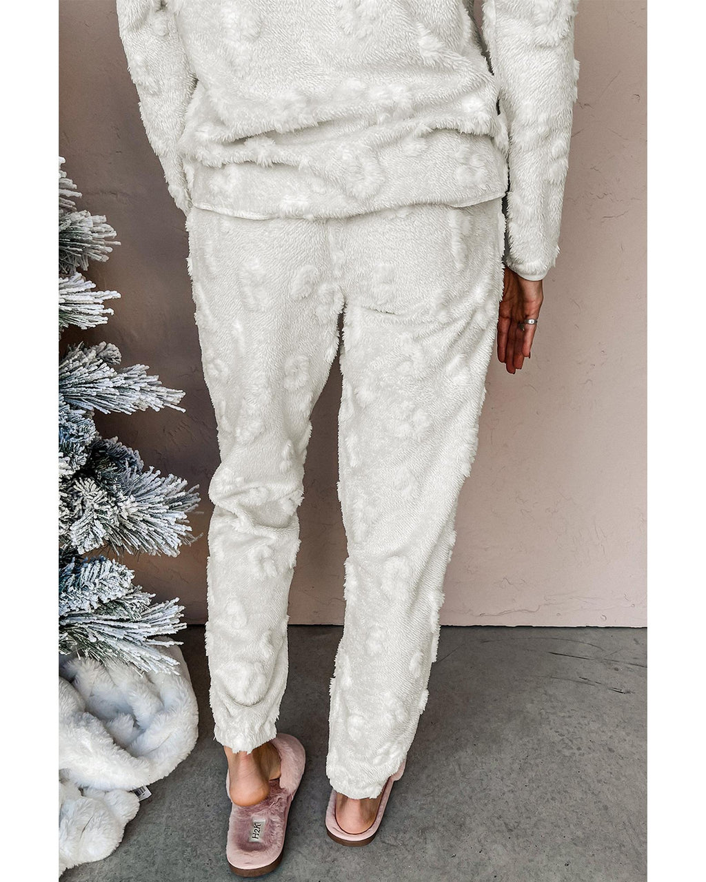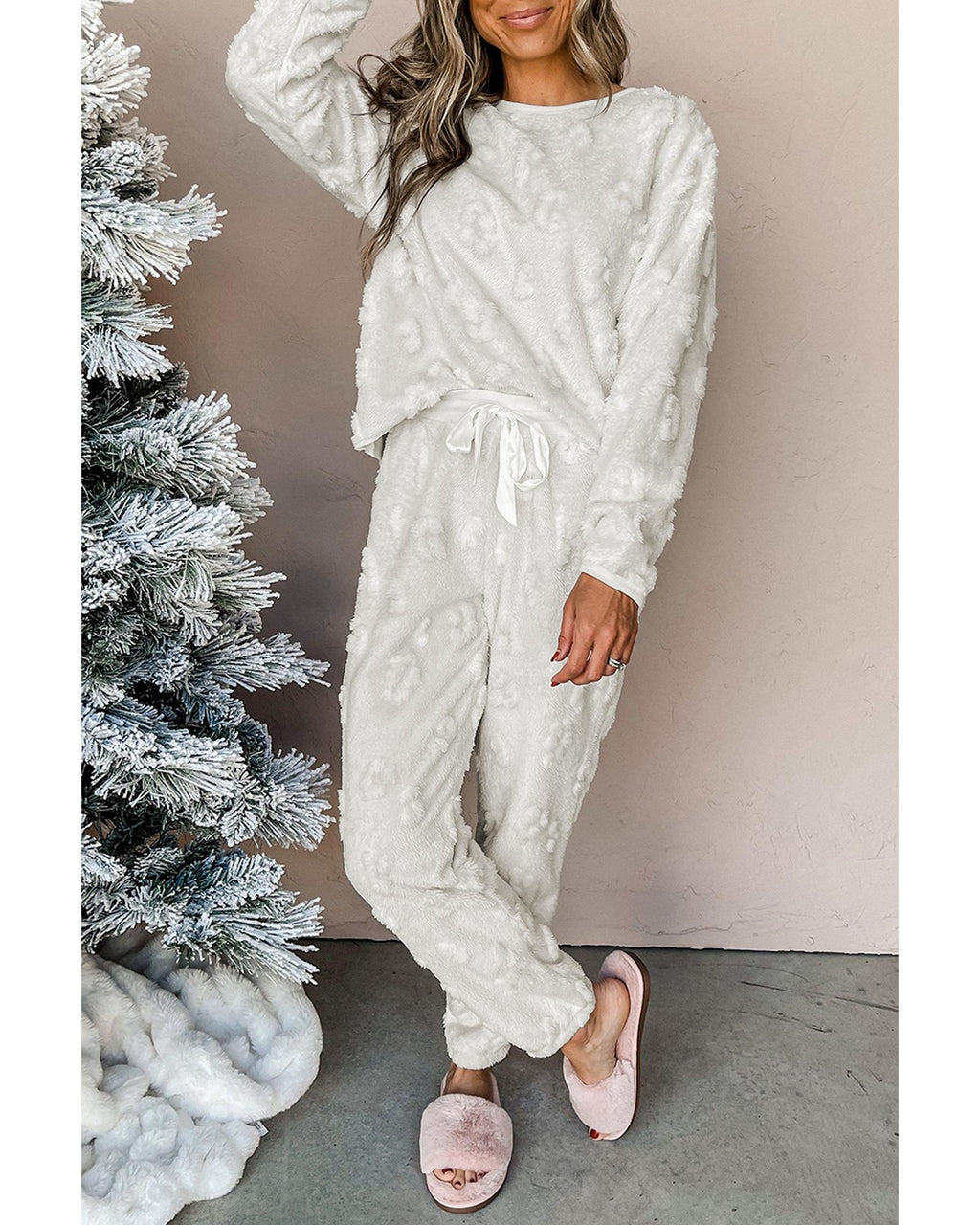 Light Grey Leopard Textured Loose Fit Fleece Lounge Set - XL