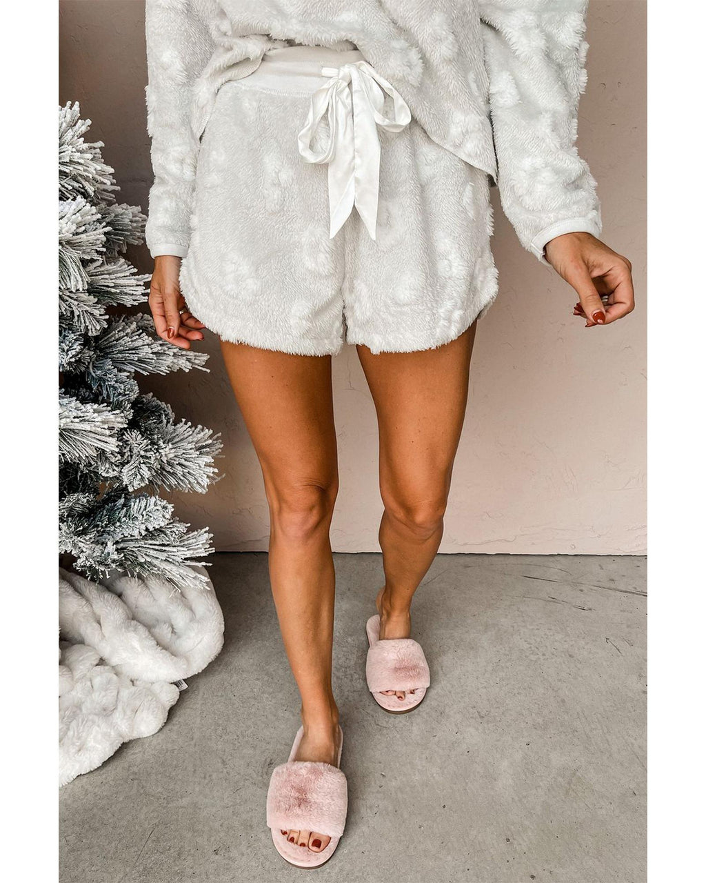 • Light Grey Textured Leopard Fleece Loose Two Piece Lounge Set